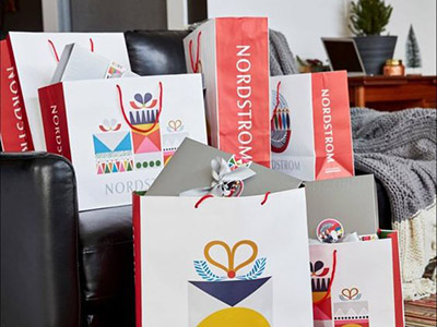 Nordstrom ha scelto una grafica semplice, ma assolutamente in tema con le festività natalizie. Queste borse, da sole, si prestano a contenere un regalo, senza bisogno di pacchetti aggiuntivi.